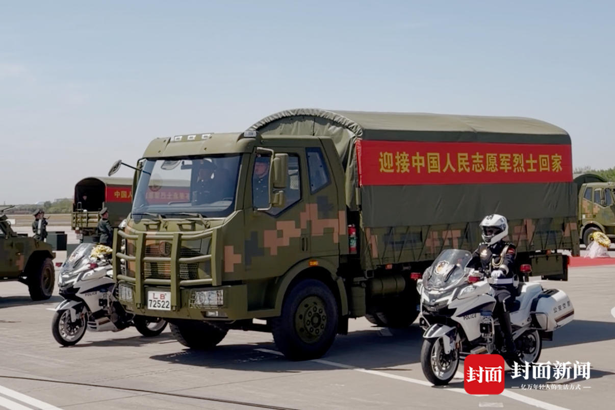 迎回仪式结束后,志愿军烈士遗骸棺椁被护送前往沈阳抗美援朝烈士陵园。封面新闻记者 戴云 摄